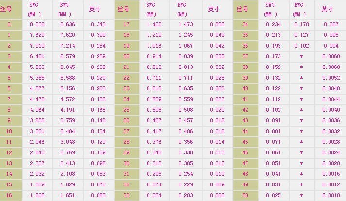 關鍵字:熱鍍鋅鋼絲@鍍鋅鐵絲@不銹鋼絲@專用絲號對照表 鍍鋅絲廠家15130860221