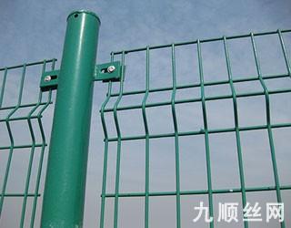 雙圈護欄網結構:用冷拔低碳鋼絲焊接成網筒狀卷邊與網面一體,用連接附件與鋼管支柱固定。